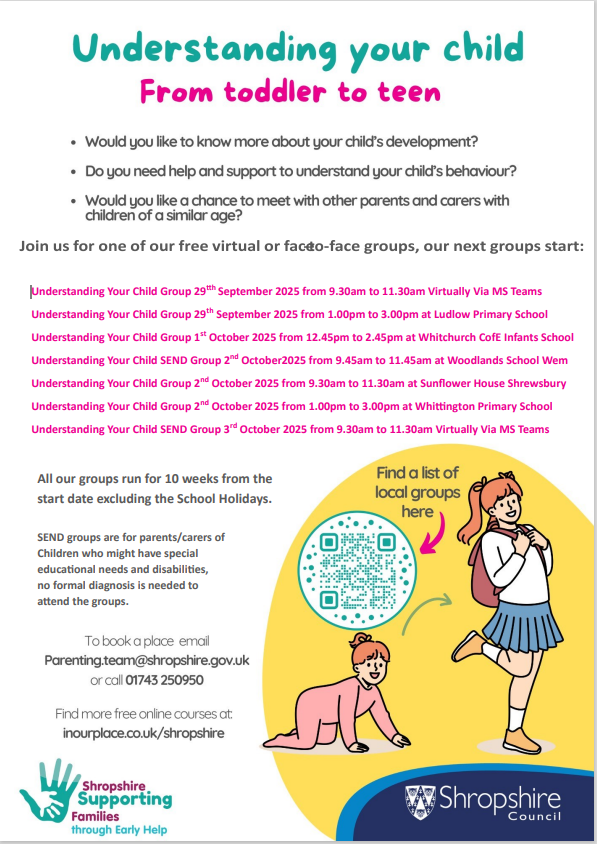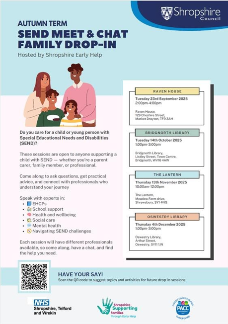 Shropshire’s SEND Local Offer has lots of information, support and resources for parents/carers of children with SEND including education, EHCPs, health and wellbeing, early help, family support, financial support, transport, things to do and lots more. Take a look at the local offer website on the following link: www.shropshire.gov.uk/the-send-local-offer